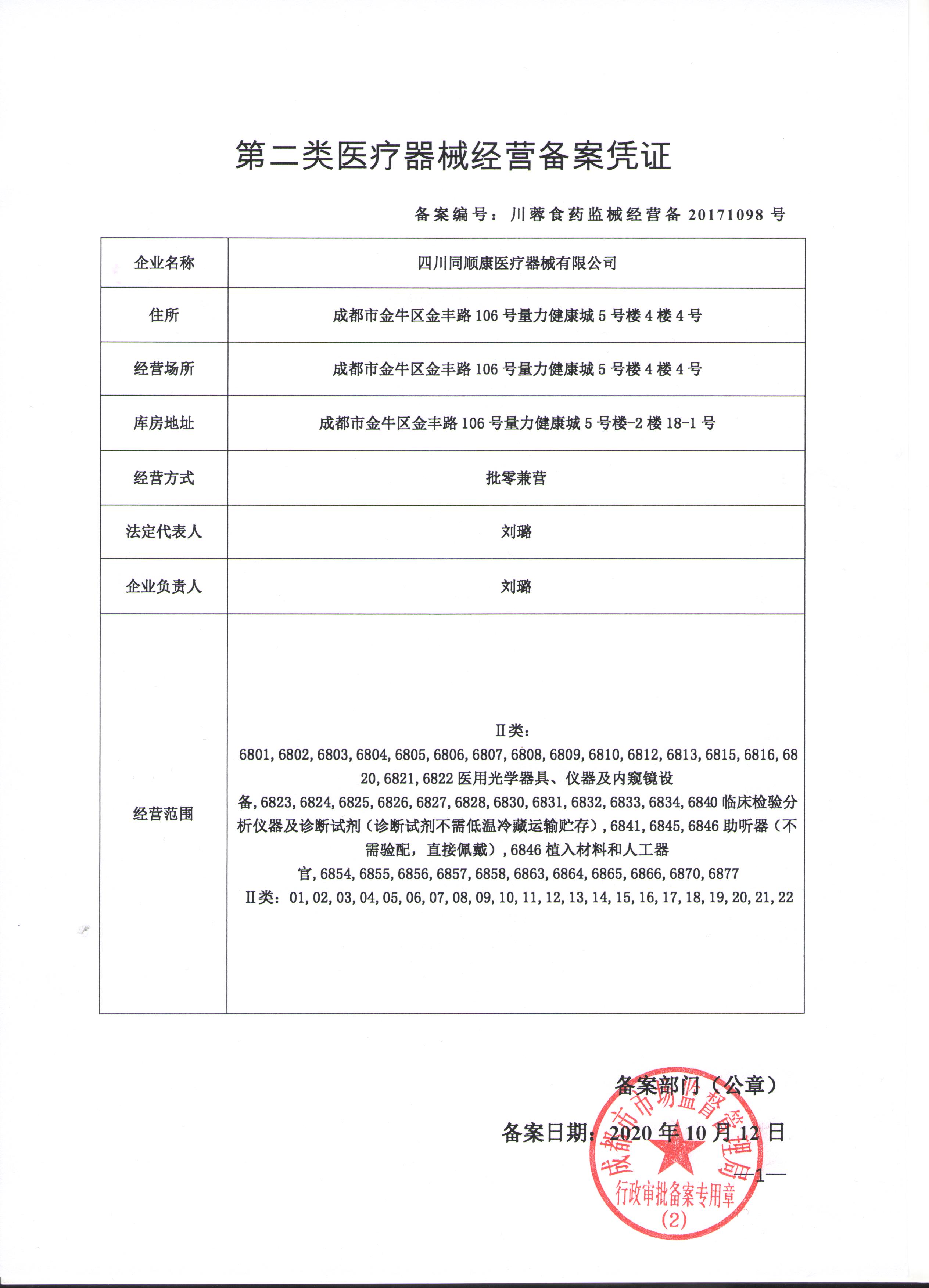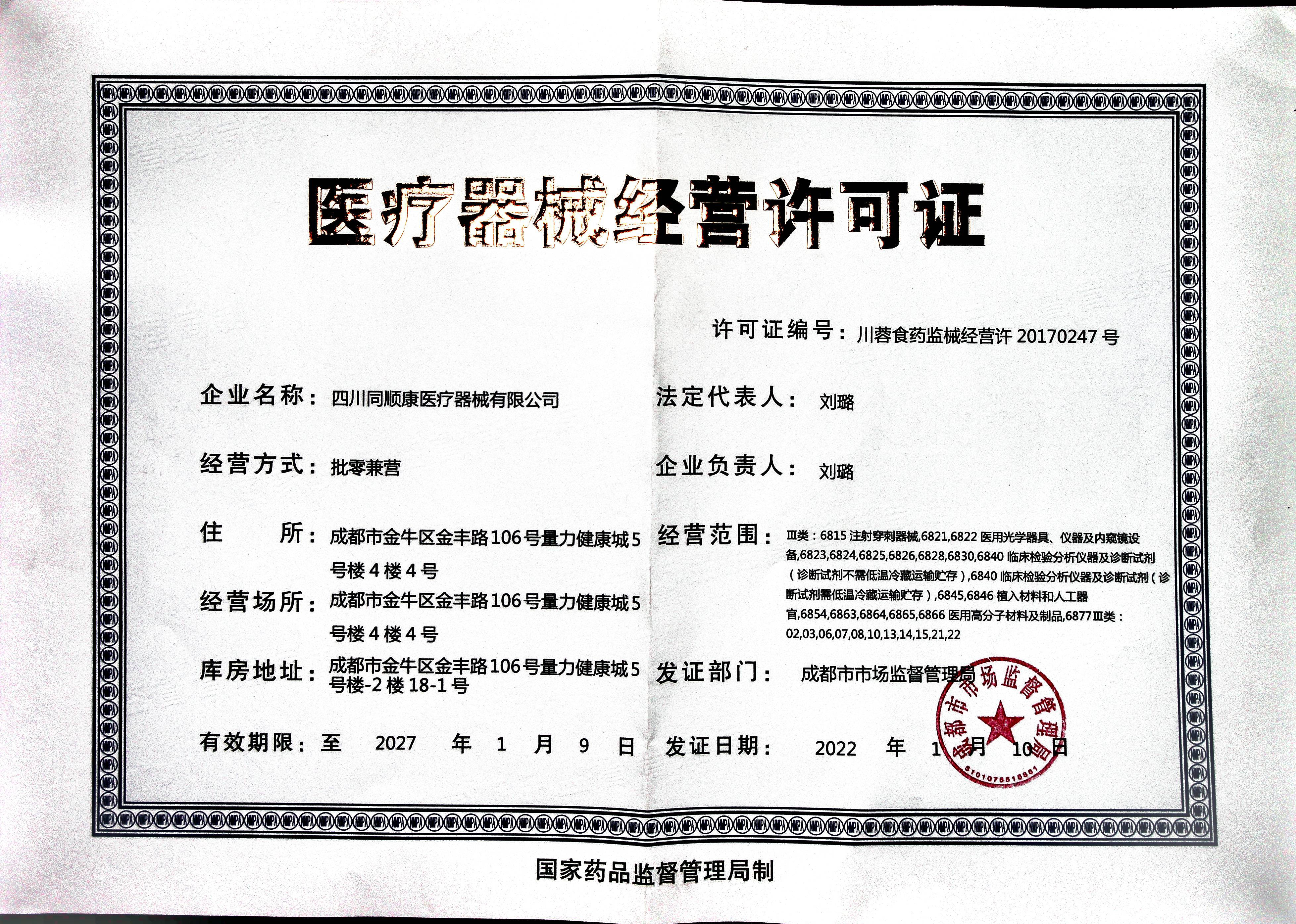 四川同順康醫(yī)療器械有限公司——資質(zhì)榮譽(yù)