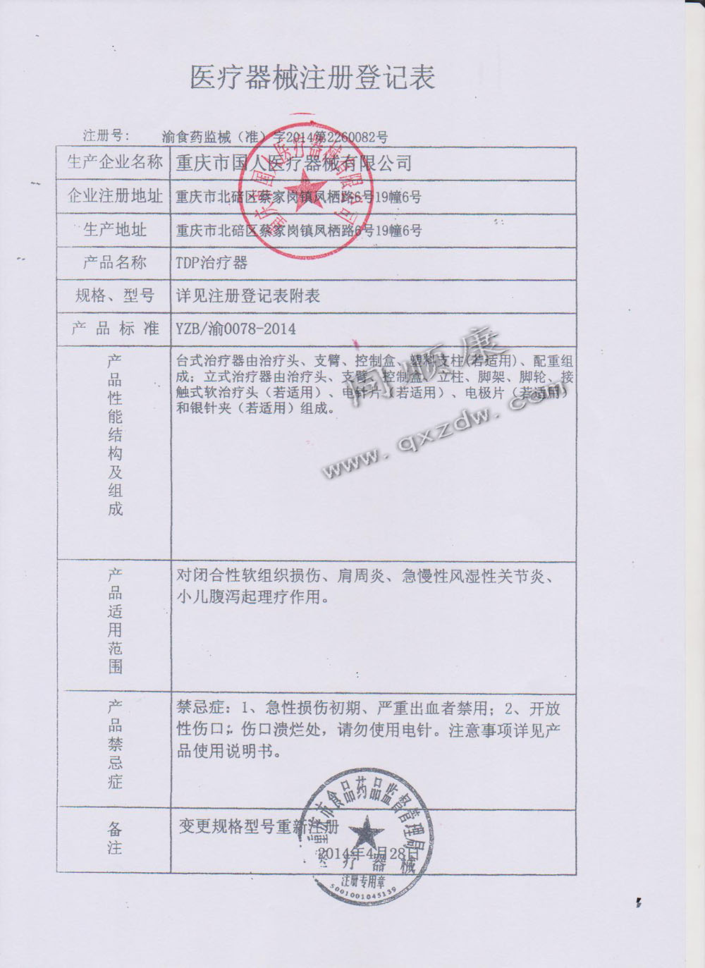 - 注冊(cè)編號(hào):渝食藥監(jiān)械(準(zhǔn))字2014第2260082號(hào)